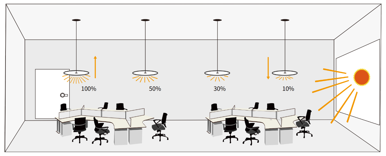 দিবালোক সংগ্রহ - স্বয়ংক্রিয়ভাবে পরিবেষ্টিত আলোর তীব্রতা অনুধাবন করে এবং শক্তি খরচ অপ্টিমাইজ করতে গতিশীলভাবে আলোর উজ্জ্বলতা সামঞ্জস্য করে;